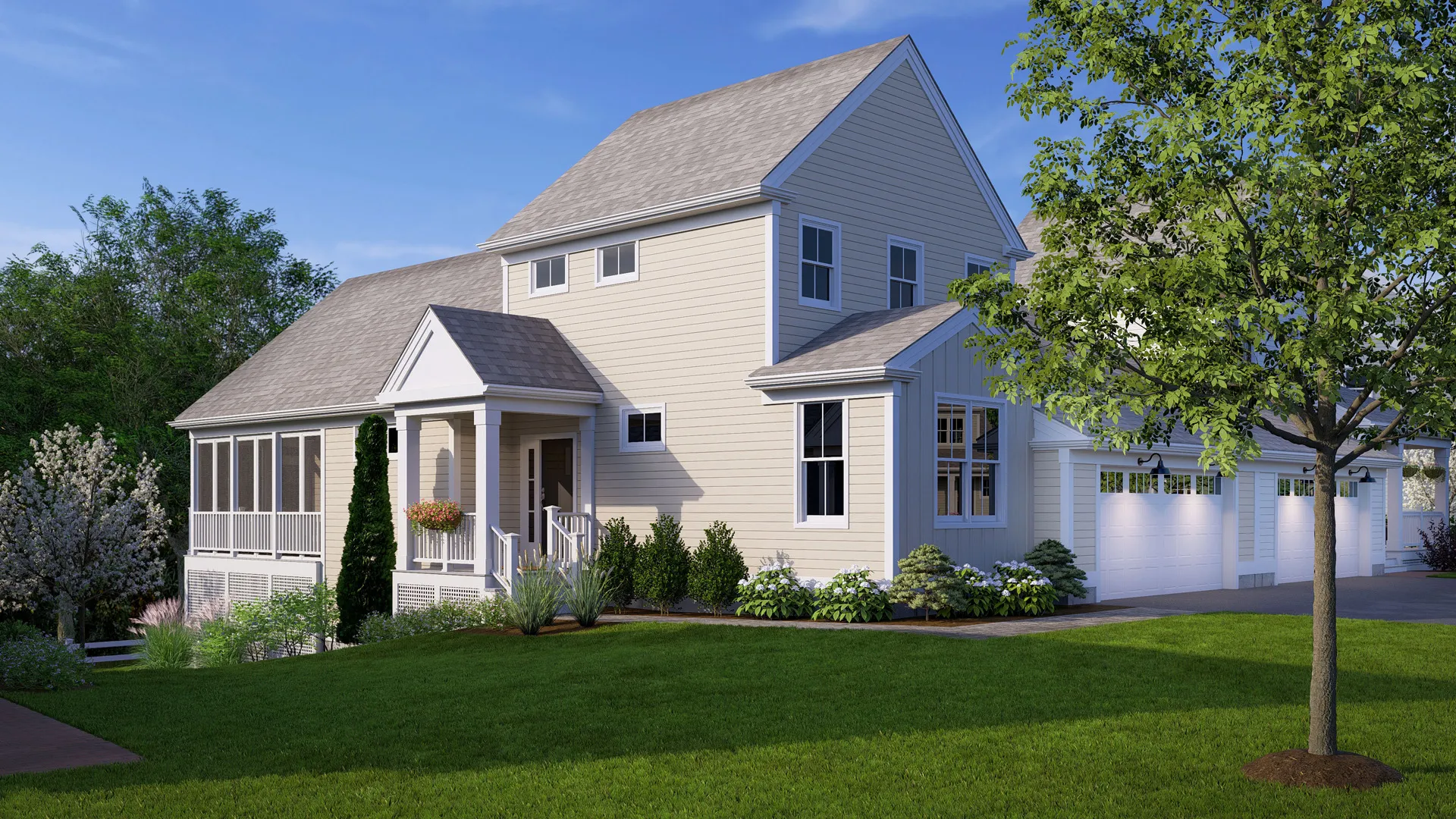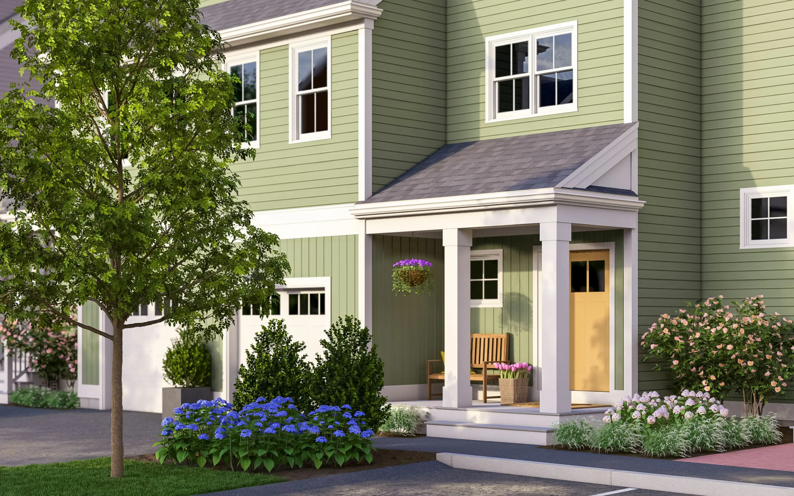 Community design vs. subdivision layout. There is a measurable difference between a planned community with sidewalks, pedestrian lighting, central greens, and shared amenities, and a standard subdivision where homes line a cul-de-sac with no common space. The former tends to hold value better and attract buyers who stay longer. Thorndike's design philosophy starts with the neighborhood before the individual home: street trees, front porches, rear-loaded parking, and gathering spaces come first.