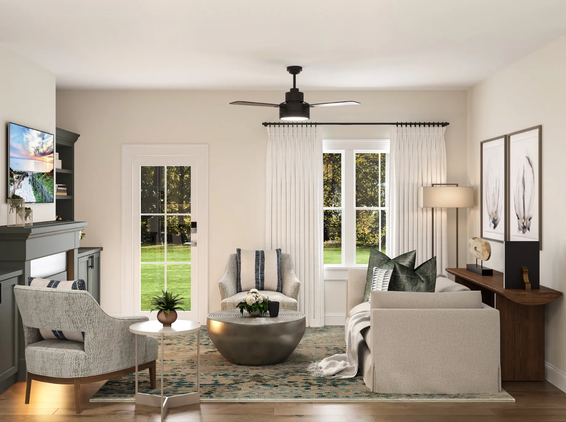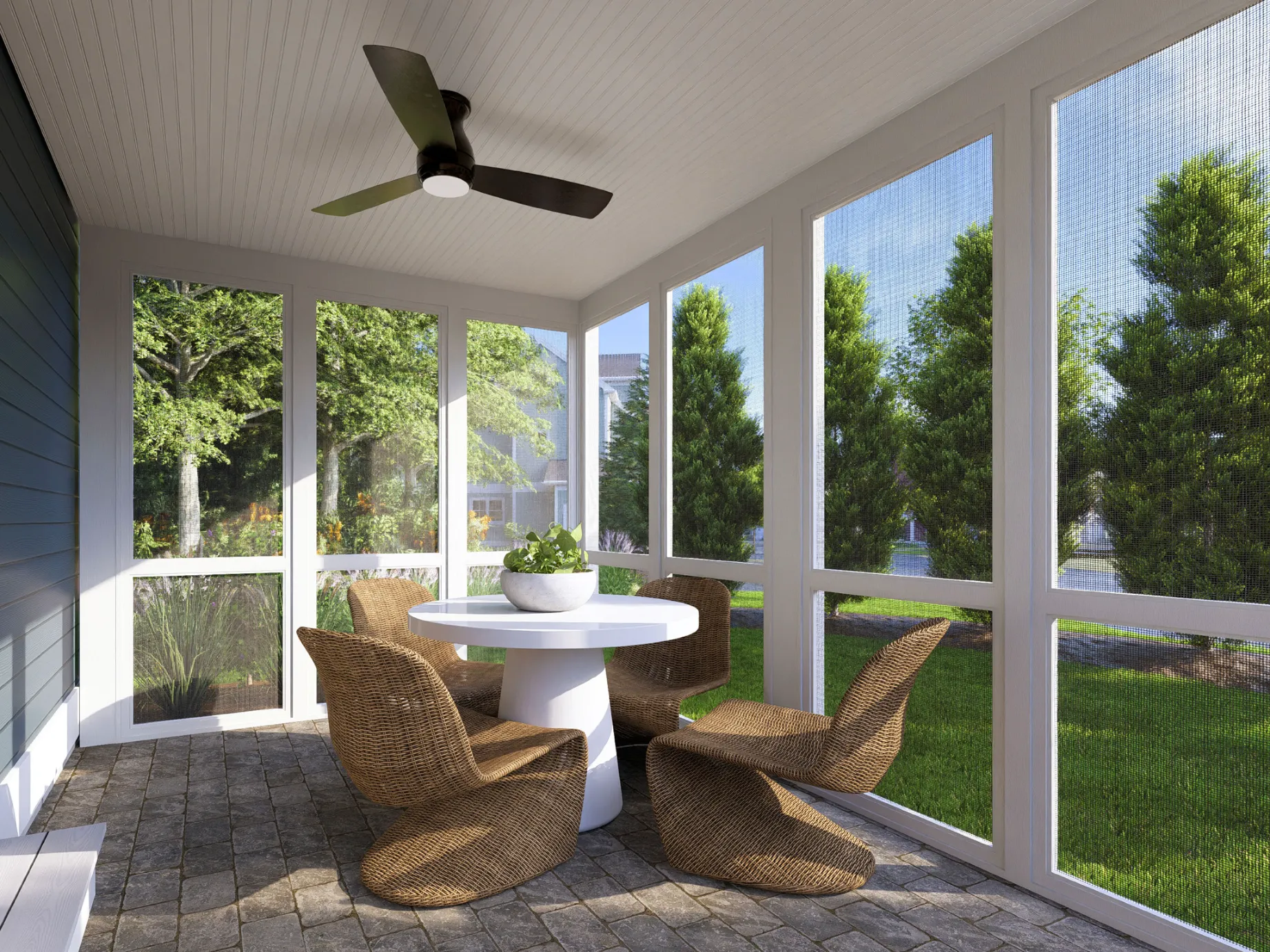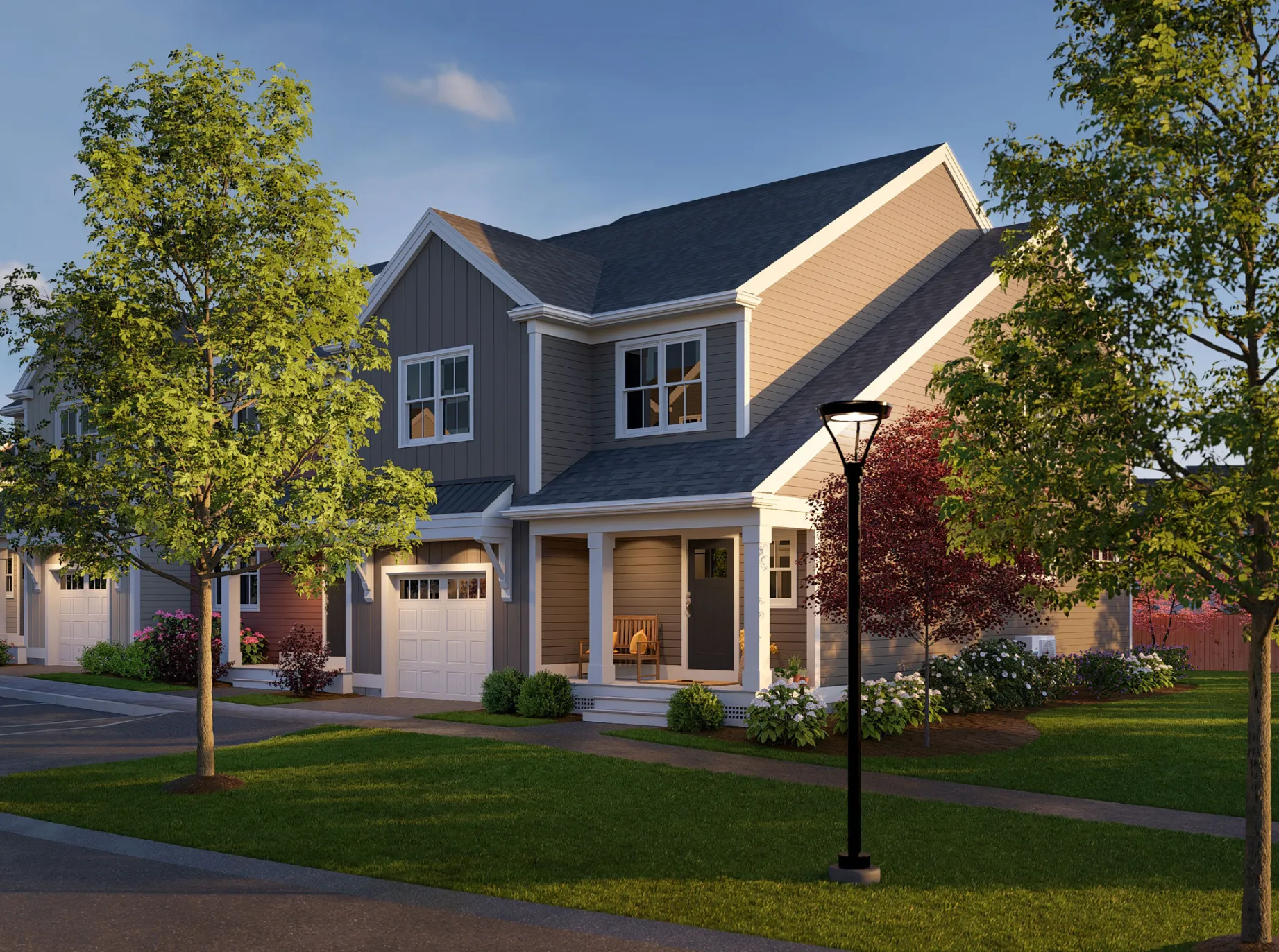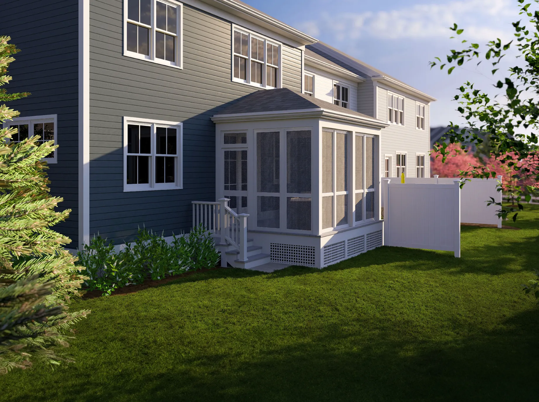 Everything about the Exp. Spruce speaks to truly thoughtful design. It starts with a welcoming covered entry porch, your introduction to a home full of room to live today, plus room to grow tomorrow. It's a great blend of contemporary and traditional design. The first floor features easy, open plan living with lots of light, a private deck, and a separate den, TV room, or office for those who work from home. There's a pantry, powder room, and even direct access from the garage via a separate entry. The upstairs layout nods to three-bedroom tradition, then puts on its contemporary hat by providing two closets in the primary suite, including a huge walk-in and an upstairs study, perfect for a home office or tv room. The two additional bedrooms are placed on the other side of the house for privacy. Other features that reflect contemporary living include the convenience of a second floor laundry and a loft space that could be a play area or study corner.